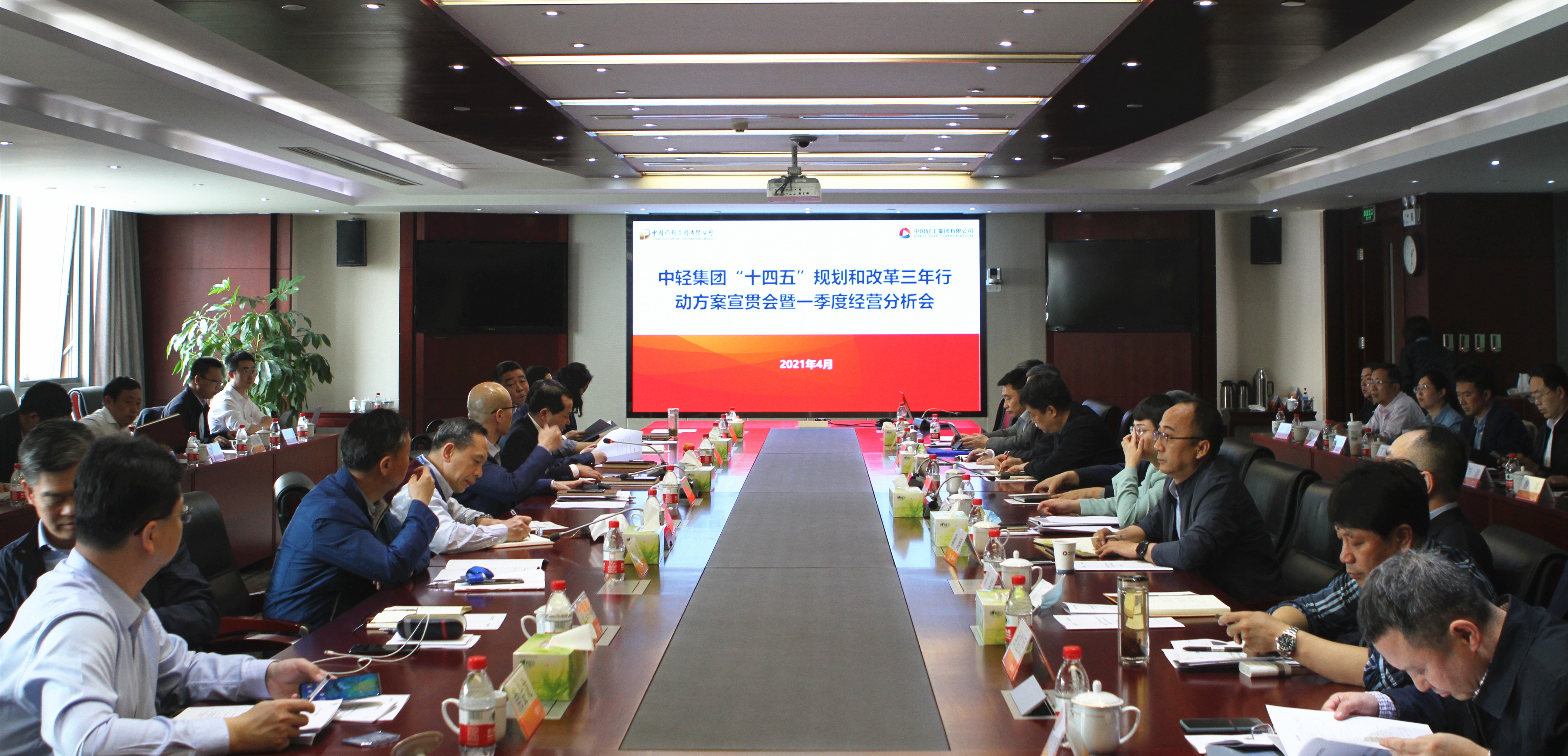 2021年4月25日,中輕集團在京組織召開“十四五”規(guī)劃和改革三年行動方案宣貫會暨一季度經(jīng)營分析會。中輕集團領導班子、總部各部室負責人、子公司主要領導和相關工作分管領導及相關部門負責人參加會議。
