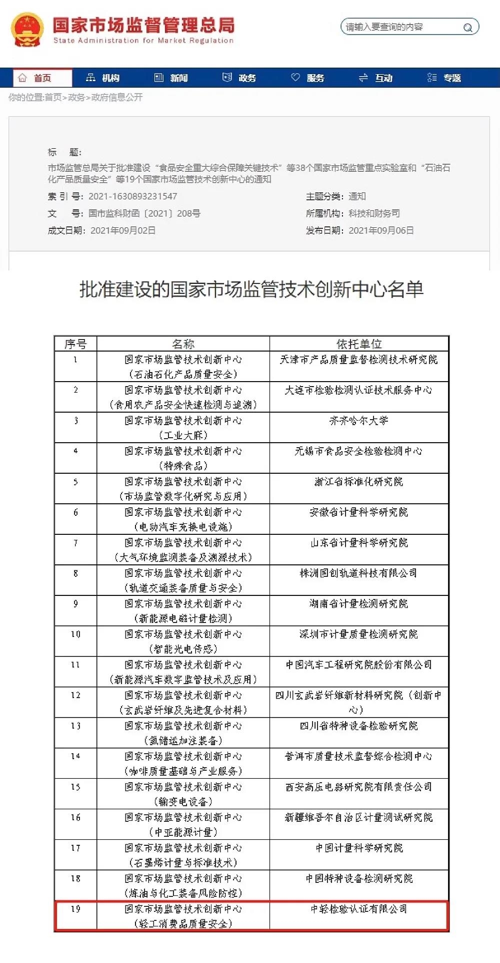 國(guó)家市場(chǎng)監(jiān)管管理總局通過對(duì)技術(shù)創(chuàng)新中心申報(bào)單位的科技研發(fā)實(shí)力、技術(shù)服務(wù)水平、成果轉(zhuǎn)化與產(chǎn)業(yè)化、科技支撐、區(qū)域協(xié)調(diào)與發(fā)展能力等條件嚴(yán)格考核和評(píng)價(jià),經(jīng)過組織申報(bào)、形式審查、集中評(píng)審、現(xiàn)場(chǎng)核查和綜合論證等程序,批準(zhǔn)建設(shè)國(guó)家市場(chǎng)監(jiān)管技術(shù)創(chuàng)新中心(國(guó)市監(jiān)科財(cái)函〔2021〕208號(hào))。