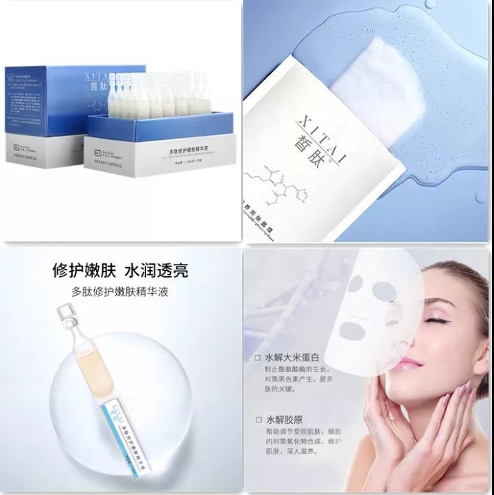 多肽修護嫩膚精華液和多肽修護面膜以保利中輕自有專利技術(shù)提取的海洋膠原三肽、大米三肽為核心原料,具有美白、嫩膚、修護等功效
