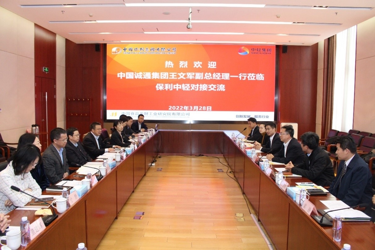 3月28日下午,保利中輕黨委副書記、董事、總經(jīng)理王珂靈在中國食品發(fā)酵工業(yè)研究院會見中國誠通控股集團有限公司副總經(jīng)理王文軍一行,雙方就加強科技服務(wù)、工程全過程服務(wù)、股權(quán)處置和資本運作等方面合作進(jìn)行了深入交流。