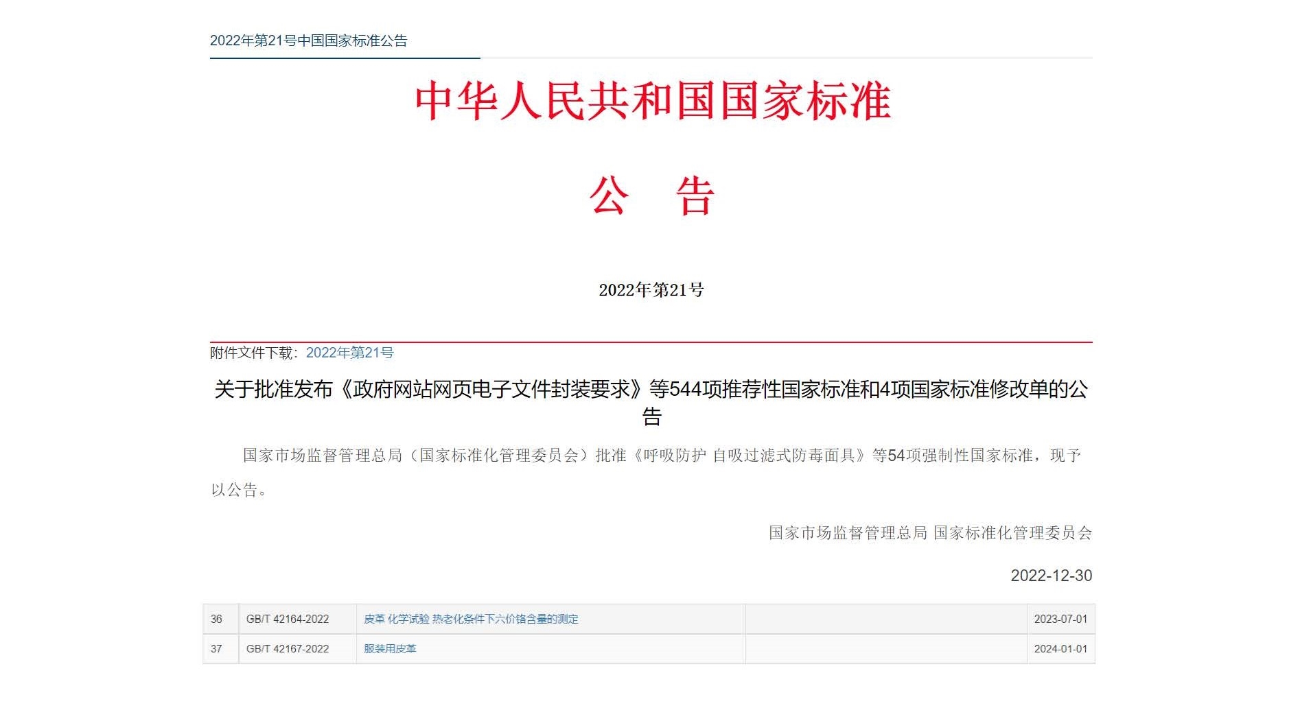 中國皮革制鞋研究院、中輕檢驗(yàn)主導(dǎo)制修訂的國家標(biāo)準(zhǔn)發(fā)布
