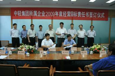 7月16日,中國輕工集團公司所屬二級企業(yè)2009年經營目標責任書簽訂儀式在集團總部舉行。集團公司領導、集團公司部門負責人、二級企業(yè)負責人出席了儀式。儀式由集團公司董事長陳學忠主持,陳鄂生總經理代表集團公司與所屬10家二級企業(yè)負責人簽訂了2009年度經營目標責任書。陳學忠董事長、陳鄂生總經理先后在簽字儀式上講話,要求各二級企業(yè)要認真分析金融危機對企業(yè)帶來的影響,找準問題,制定切實可行的辦法,力保全年任務的完成,為重組后新集團的快速發(fā)展打好基礎。
