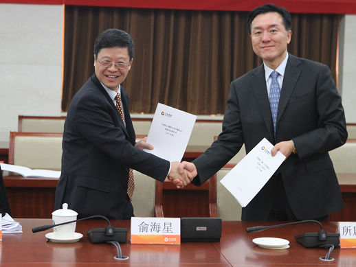 俞海星總經(jīng)理與造紙院院長曹春昱簽訂責任書