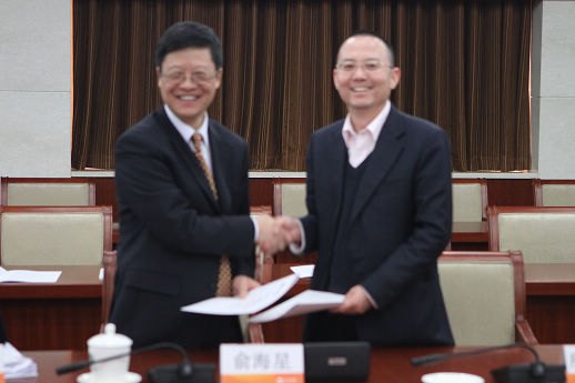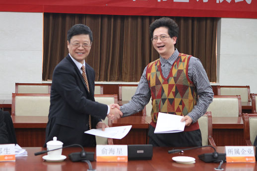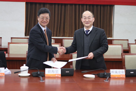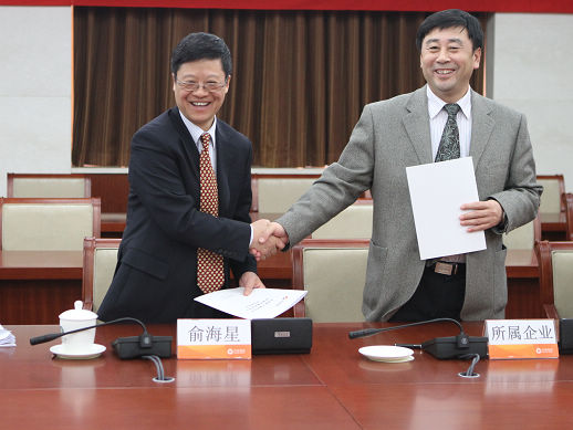 俞海星總經(jīng)理與日化院院長王萬緒簽訂責任書