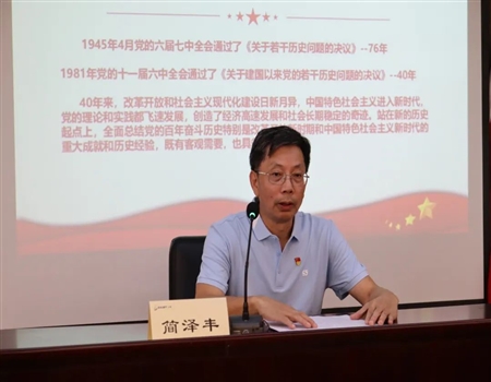 簡(jiǎn)澤豐書記以“以史為鑒、開創(chuàng)未來(lái)、實(shí)干擔(dān)當(dāng)、勇毅前行”為主題講授了黨的十九屆六中全會(huì)精神專題黨課,從十個(gè)方面進(jìn)行“數(shù)字化”提煉,帶領(lǐng)全體黨員再次學(xué)習(xí)了黨的十九屆六中全會(huì)精神。