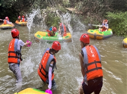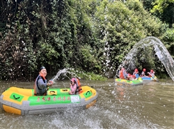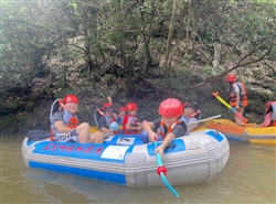下午,大家有的同事結(jié)伴,有的家人同行,乘坐皮劃艇,順流而下,在急流中感受舟順?biāo)械目鞓罚諒潟r的碰撞,濺起的水花,伴隨著不斷的歡笑尖叫,好不快樂!到了漂流終點,大小朋友們都舍不得下船,還想再來一次!